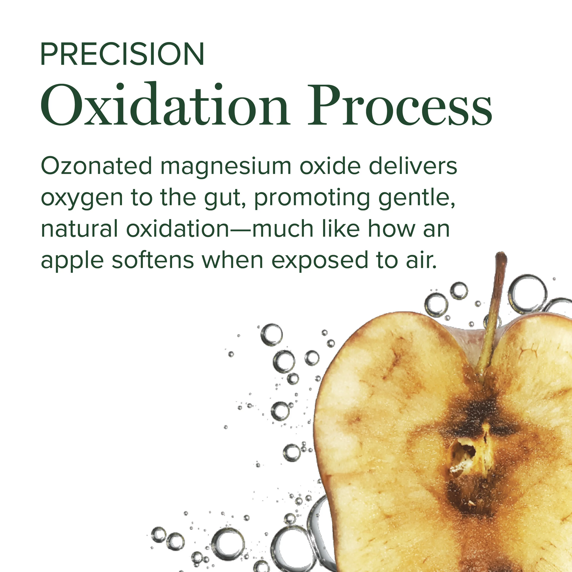 Oxy-Powder, when in an acidic environment, begins to slowly release nascent or mono-atomic oxygen. The release of oxygen continues throughout the digestive system. The magnesium acts as a vehicle to transport the oxygen throughout the body.